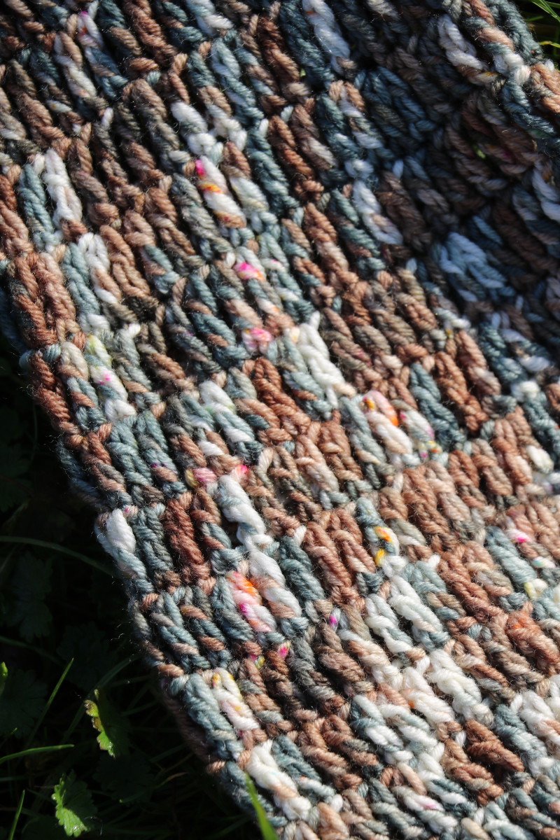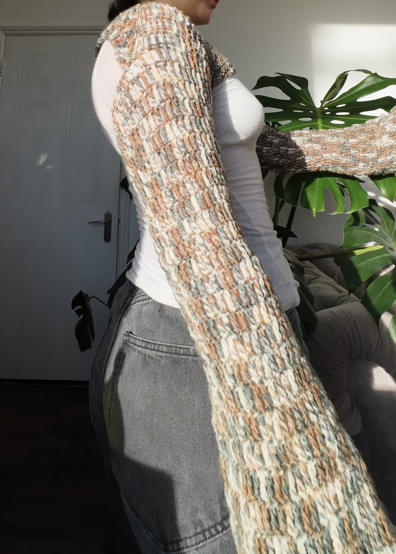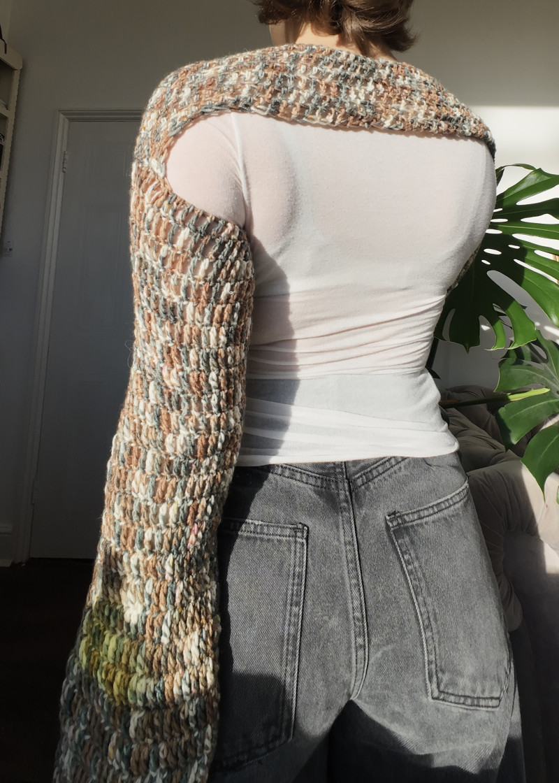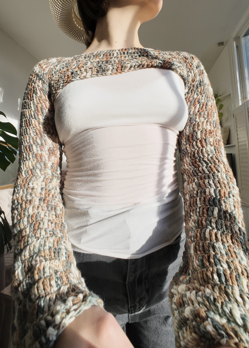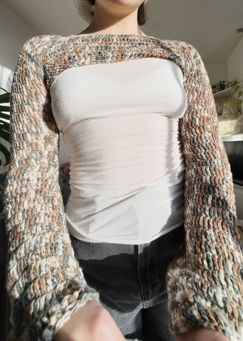 Super fun brown, petrol, and cream hand-dyed bolero/shrug!