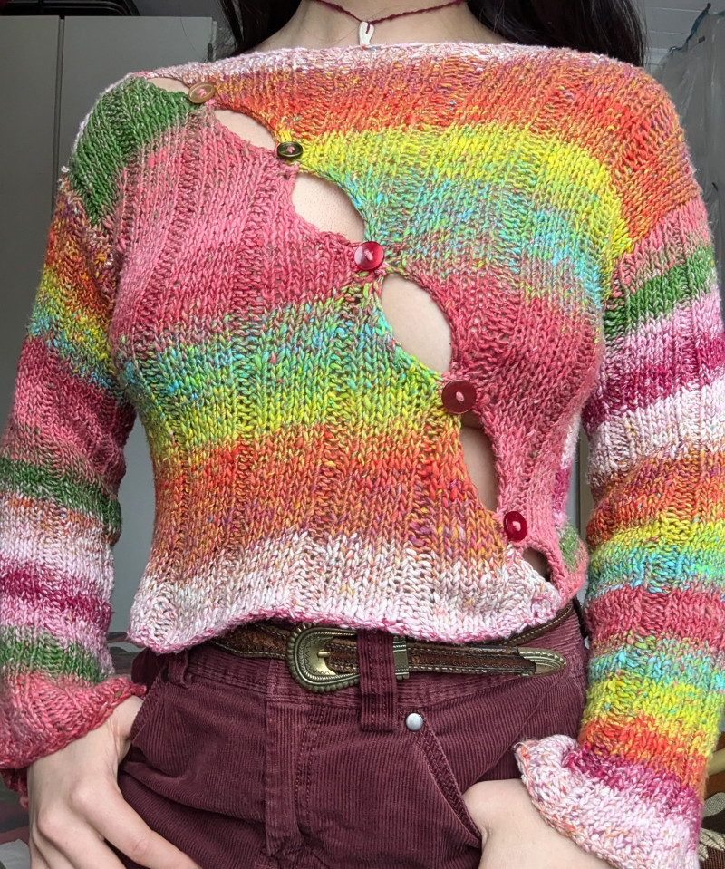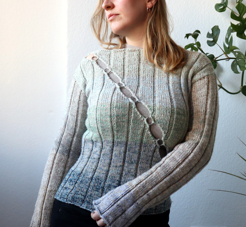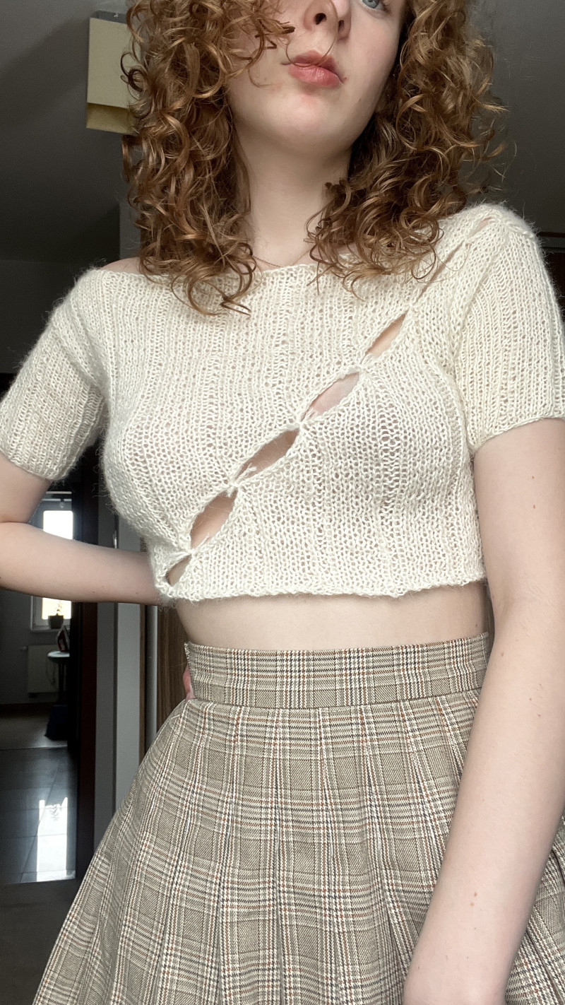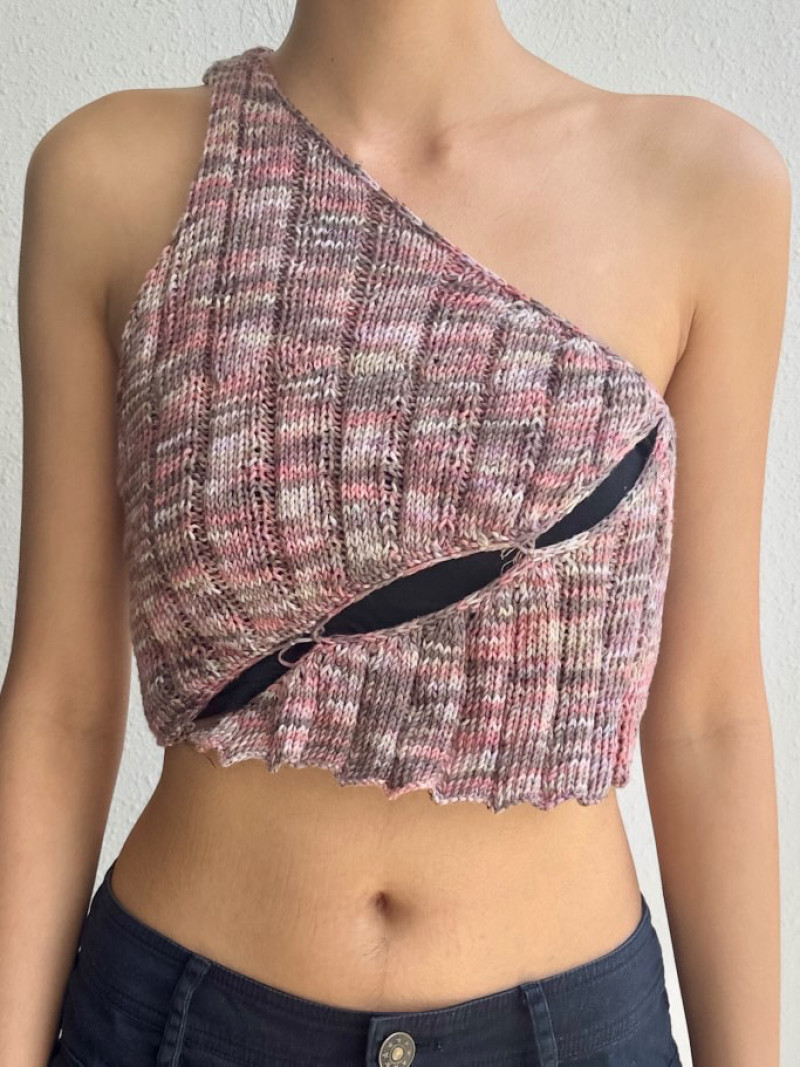 This is a digital knit pattern made so that you can create your own version of the Slice Me Up Top.