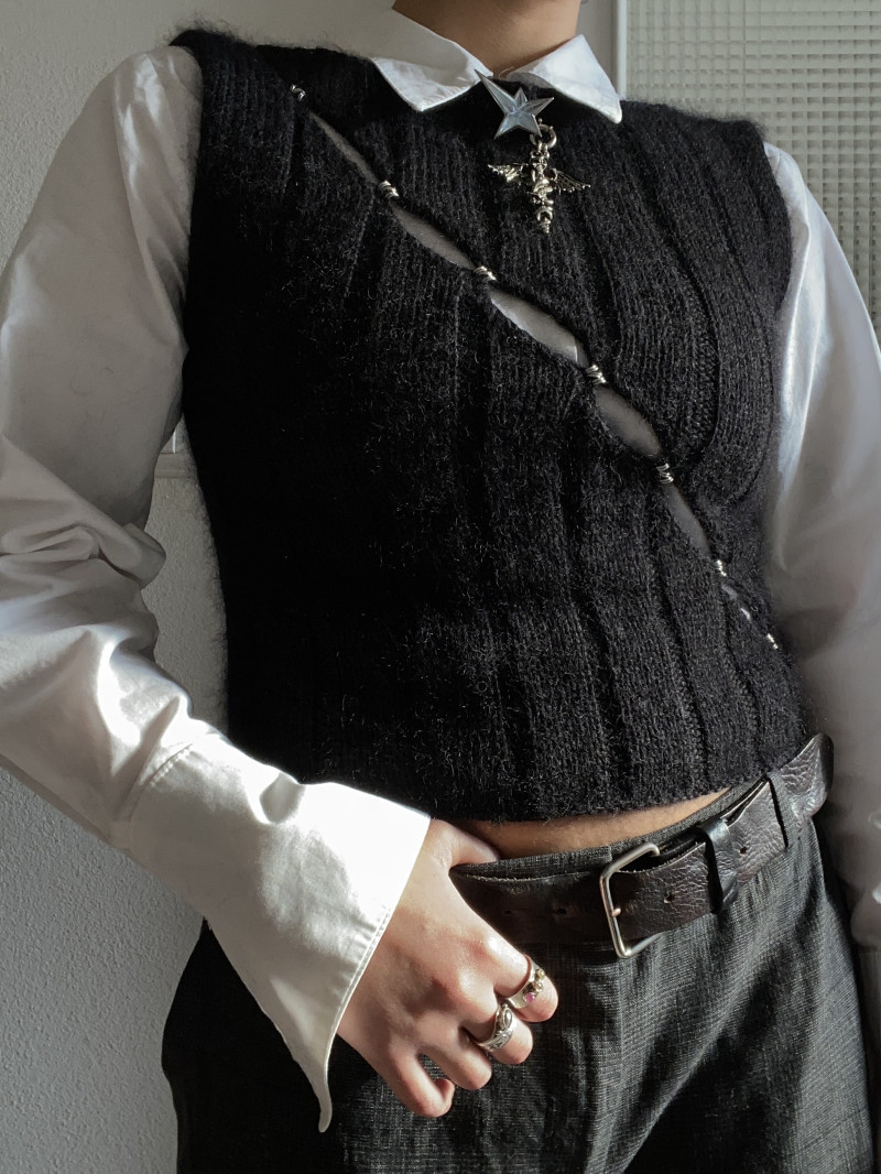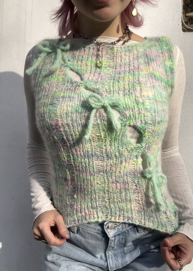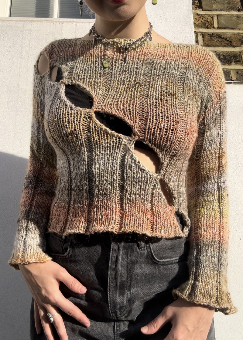 The pattern is made-to-measure, size size-inclusive, and you can use any type of needles & yarn! You can create the top using scraps, variegated yarn, mohair, or make it more classic.
