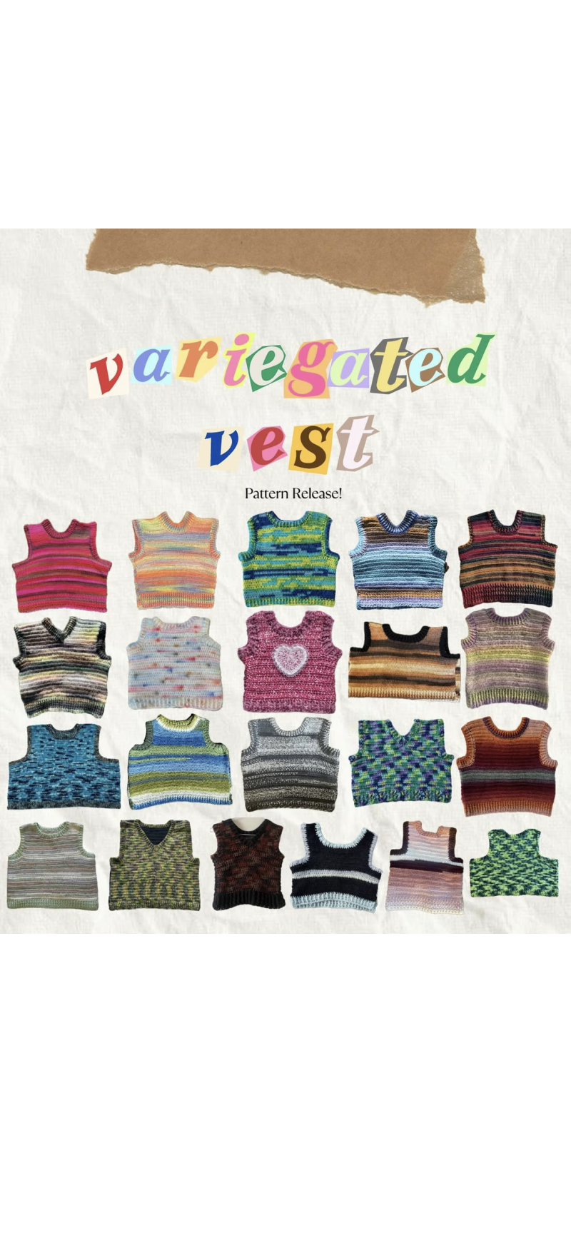 This is a PDF-only pattern. By purchasing this item, you will receive all the instructions needed (including the testers gallery) to make the Variegated Vest.