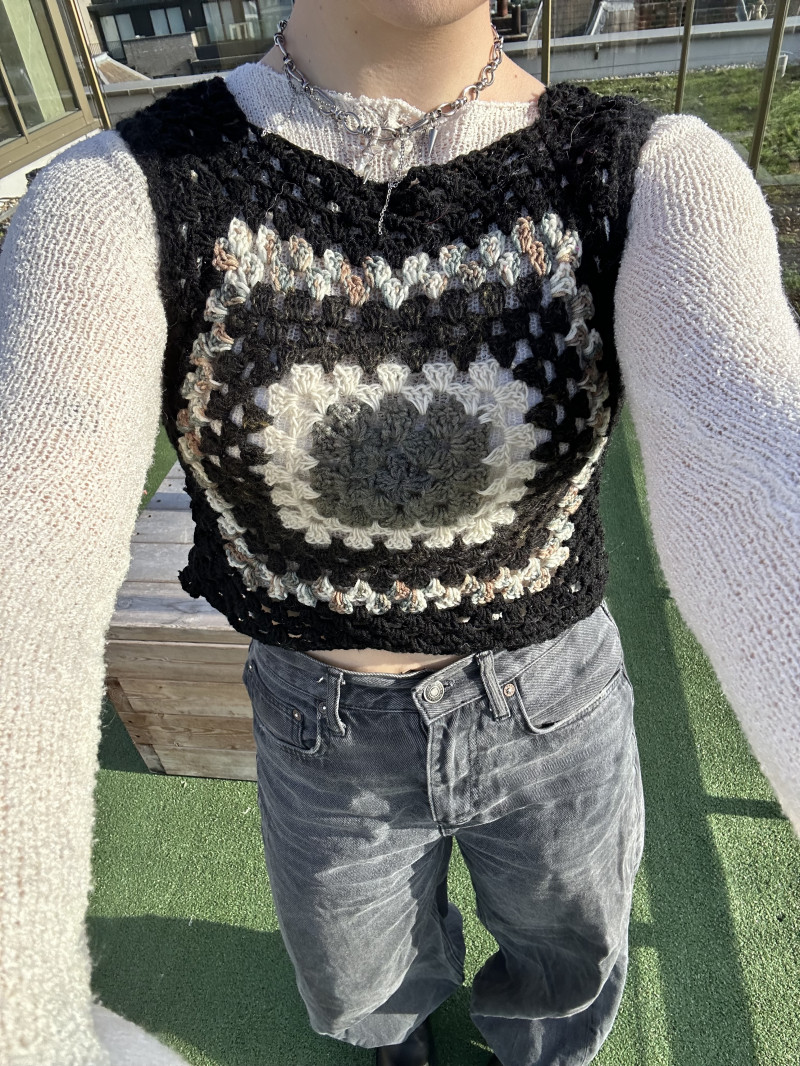 A little granny square vest made out of 100% merino scraps i had!