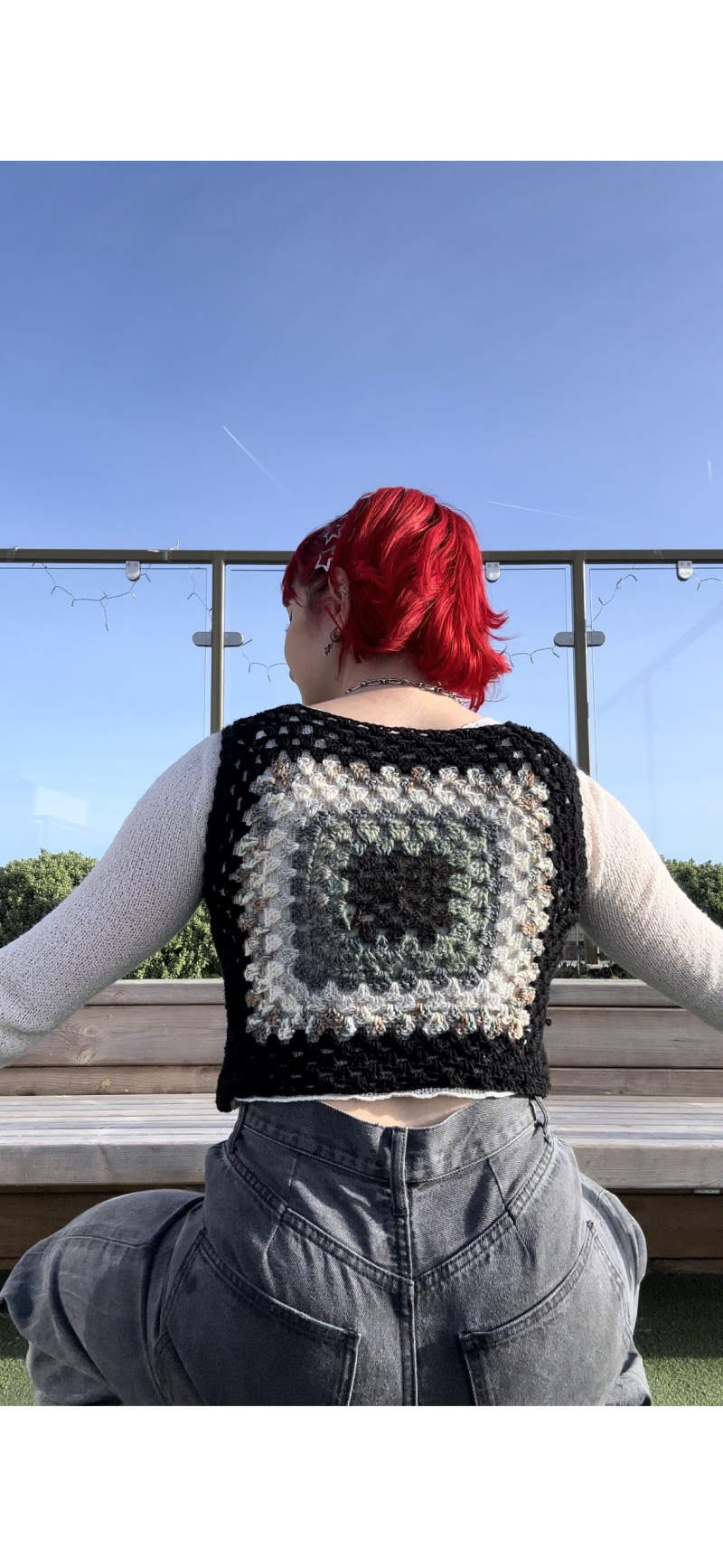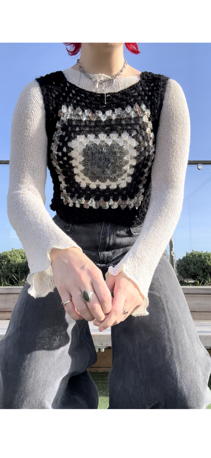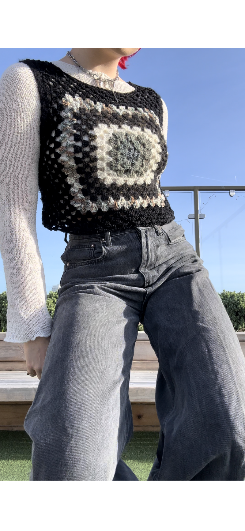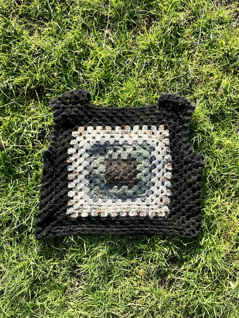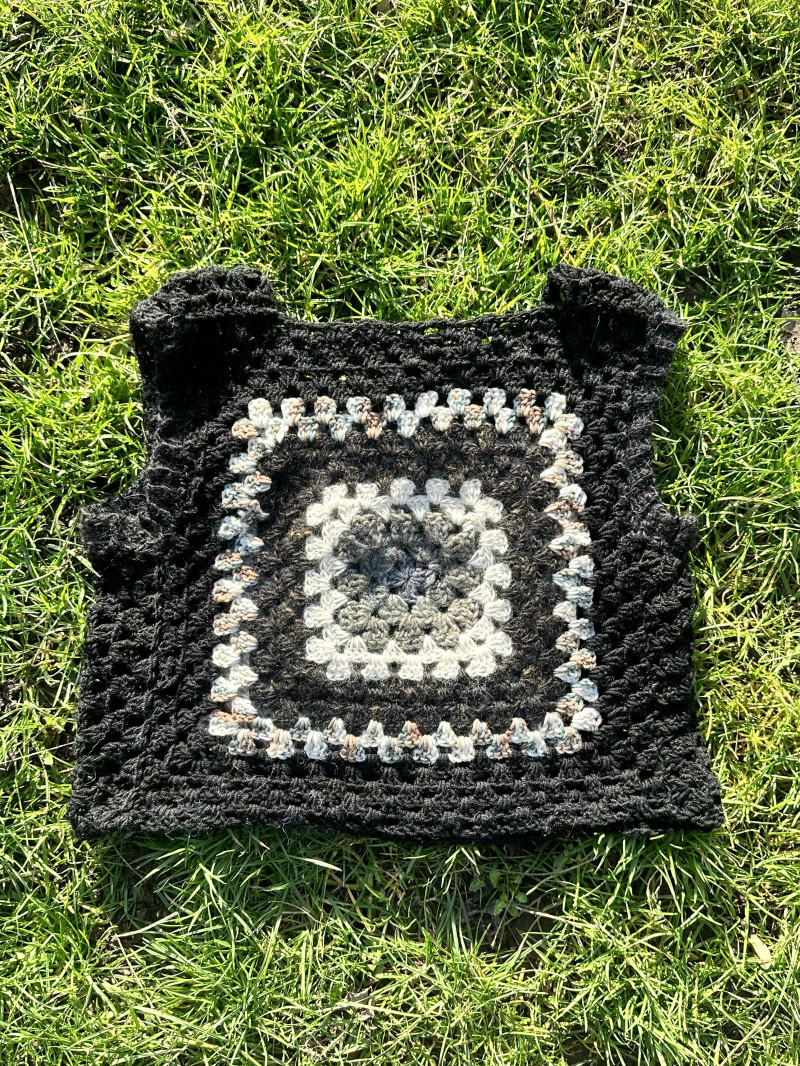 Black granny square crochet vest