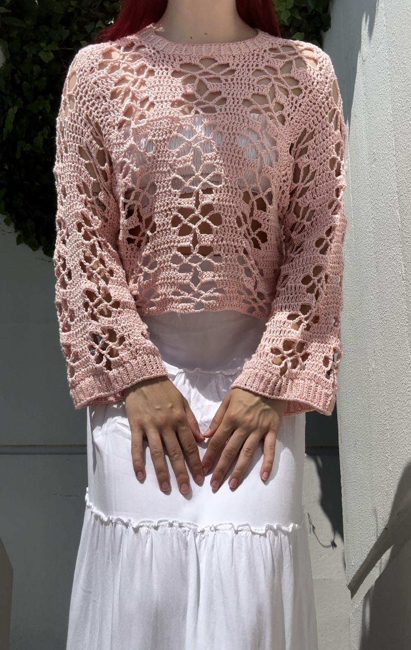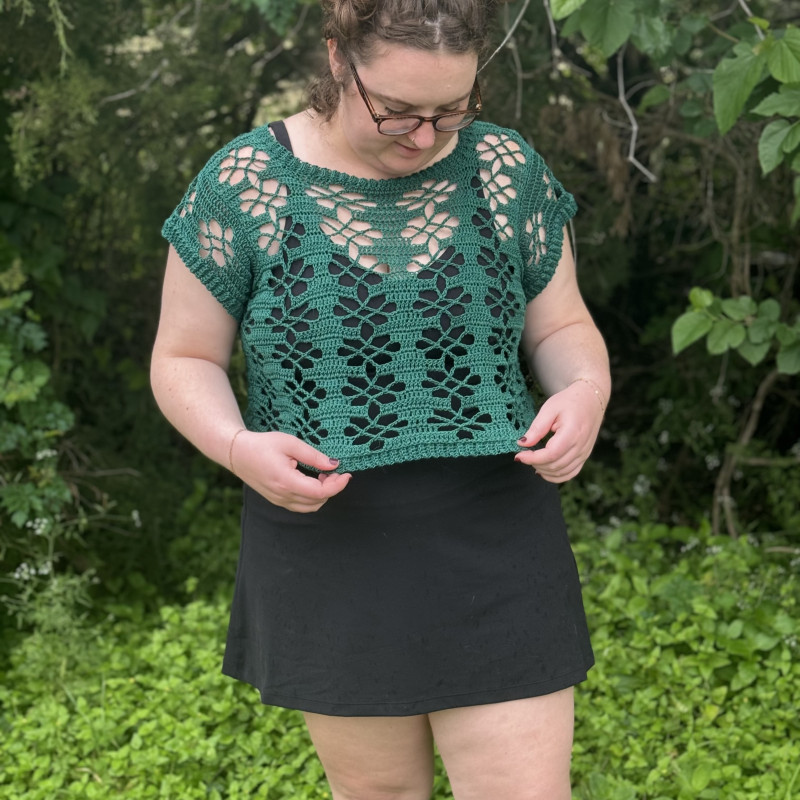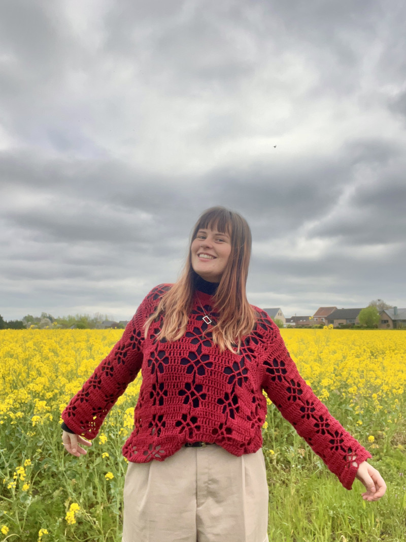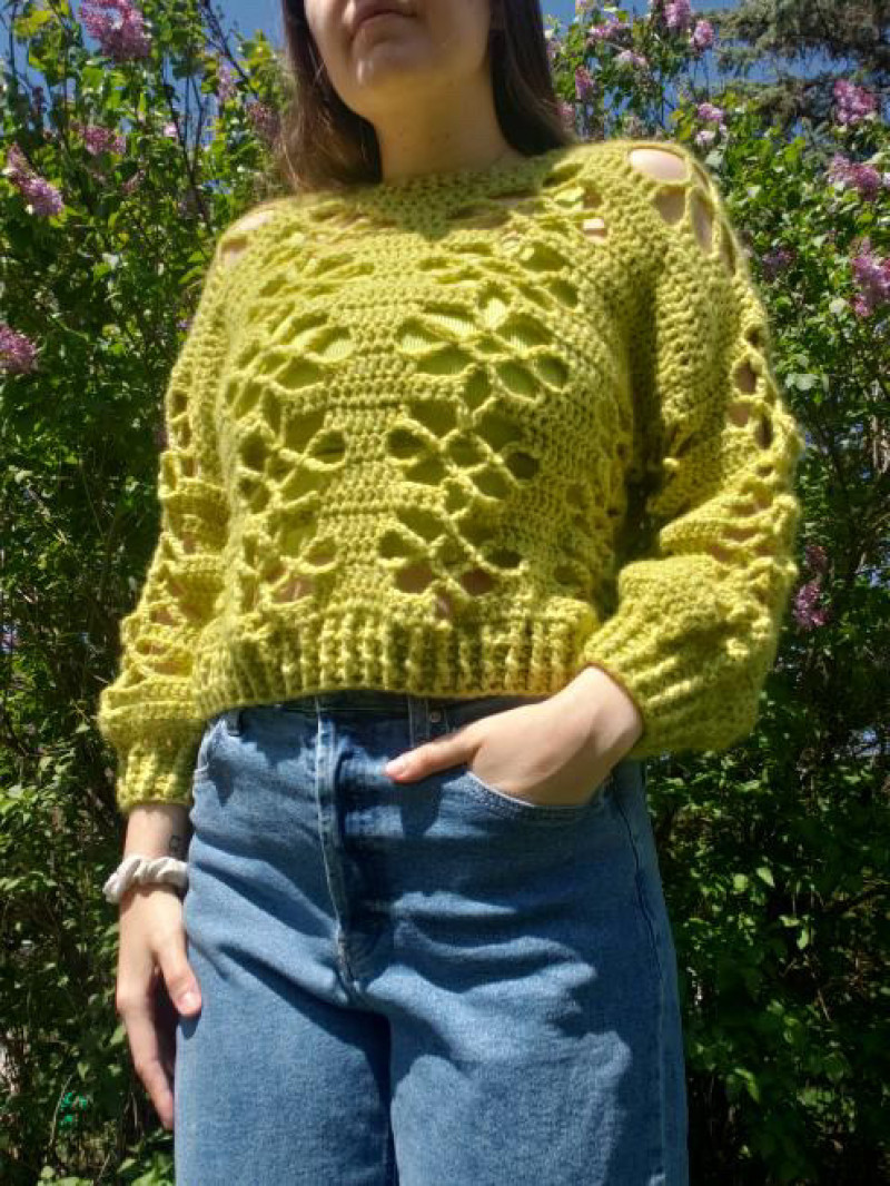 The Flora sweater is a made-to-measure and size-inclusive pattern suited for advanced beginners.